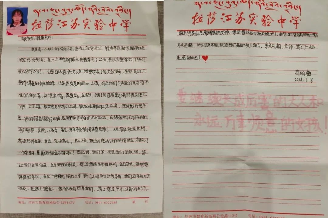 今年五月,司佳蕾又再次回到了拉萨,回到了曾经支教过的拉萨江苏实验中学,兑现了她在离别时跟学生们许下的诺言。那时,白玛央金和荷丽梅正在为梦想做着最后的冲刺,但因长期处于高压之下,她们已经倍感疲惫、甚至渐渐开始焦虑。白玛央金说:“再次见到司老师我们都非常激动!是她再次回到拉萨,让我那束已有些渐弱的梦想火苗重新点亮。”荷丽梅说:“我们从来没想过司老师真的会回来,特别开心和感动。她一直鼓励我们,说会等我们的好消息,还给每个人送了一张手写的明信片,特别的暖心,让我瞬间有了更大的信心和动力继续拼尽全力!”