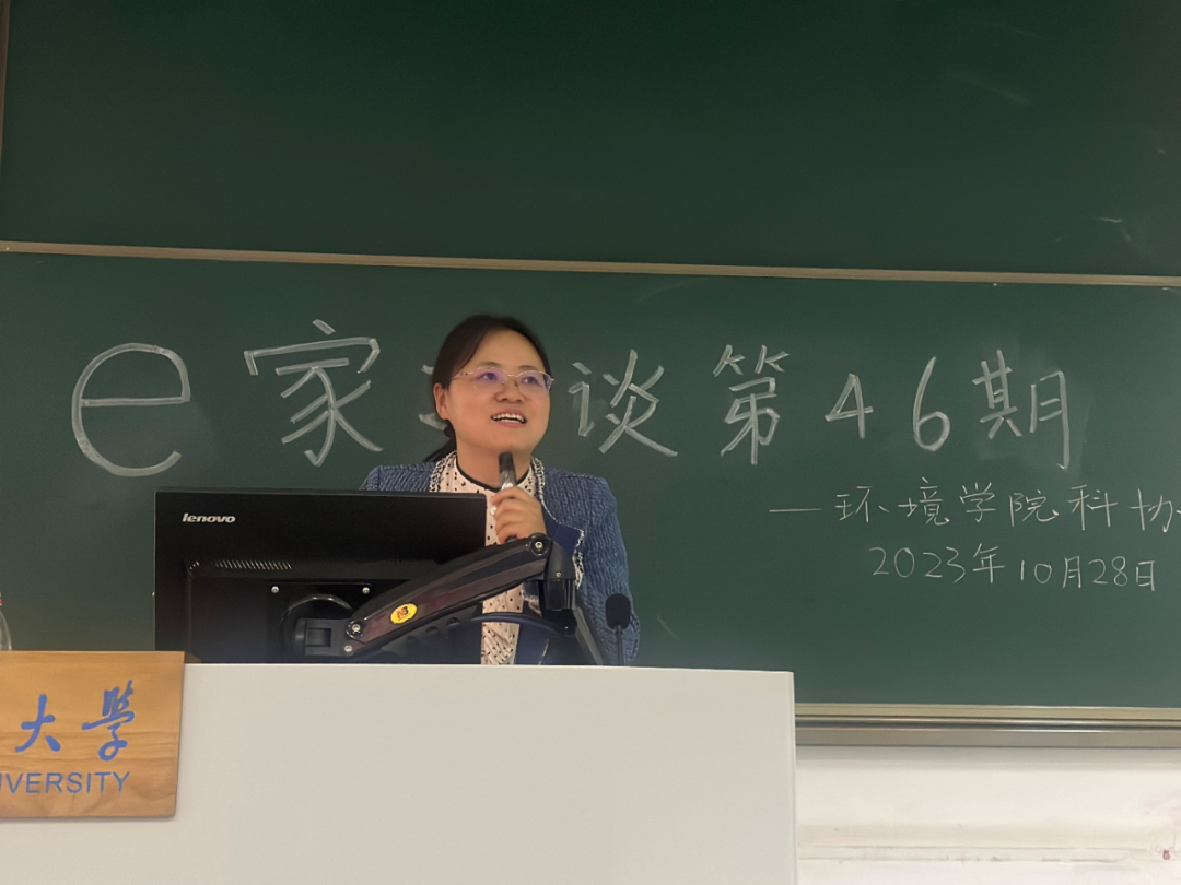 2023年10月28日晚,环境学院第四十六期E家之谈成功举办。本期邀请到了环境学院硕士生导师、副教授王永花老师为同学们讲解环境污染物非靶向筛查技术发展动态与案例分析。主持人郭青林同学向来参会的同学们介绍了本次E家之谈的主讲人和主题,由此拉开了本次活动的帷幕。