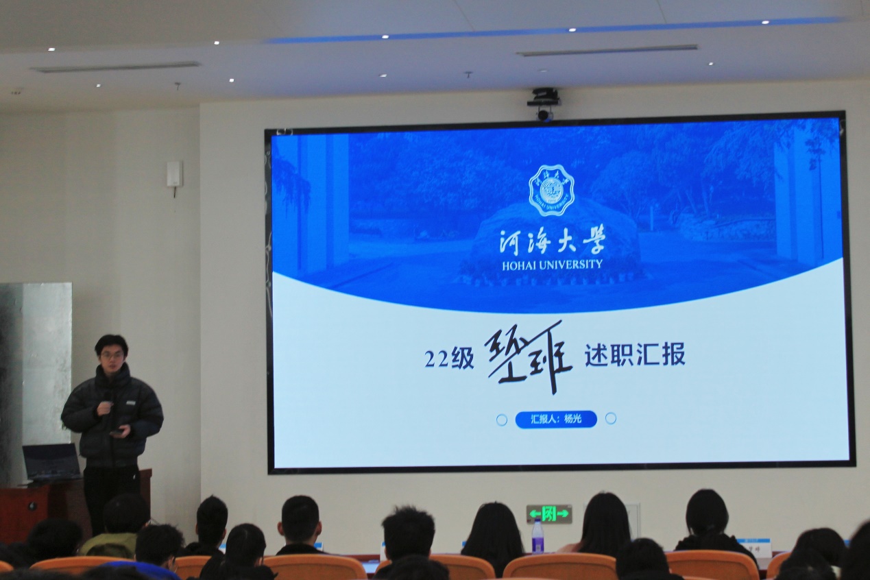 随后,针对学期年级班级建设情况,22级年级长王泽宇同学与各班班长均进行了述职汇报,回顾反思过去的基本工作、思想教育、社科活动、学习竞赛、生活保障等多方面的开展情况。分析问题,解决问题,力争在未来工作中做到更好。