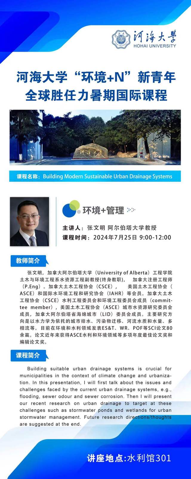 开云电竞网“环境+N”新青年全球胜任力暑期国际课程:“环境+管理”--现代城市排水系统建设与管理