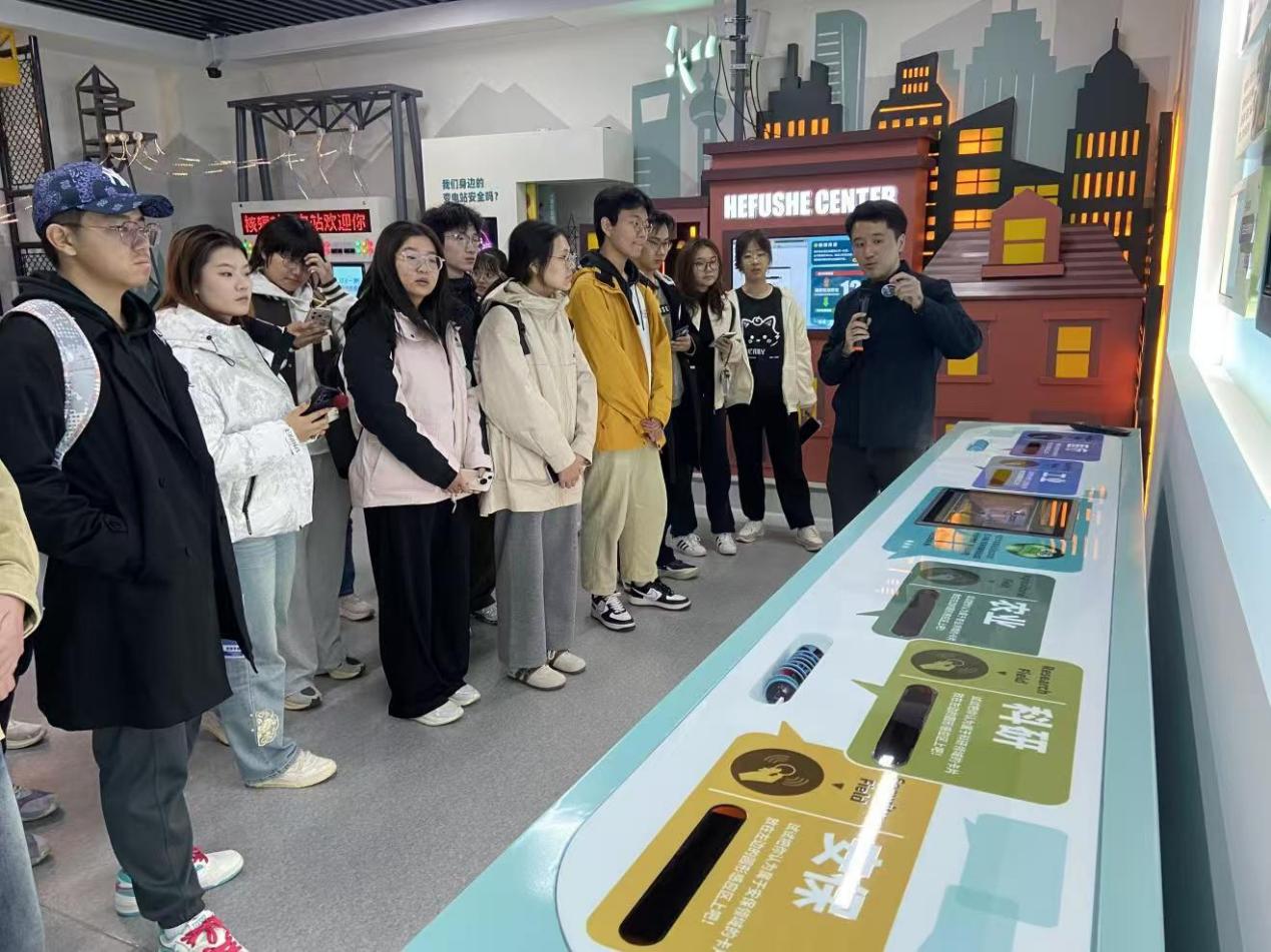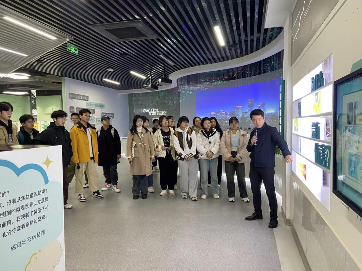 活动开始,周程老师为同学们介绍了核辐社科普馆的概况,讲述了核能核电辐射、输变电设施电磁环境、移动通信设施电磁环境、核技术利用四大知识板块。
