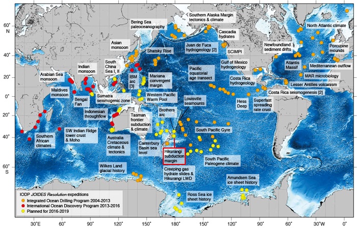 国际大洋发现计划(IODP,2013-2023)及其前身综合大洋钻探计划(IODP,2003-2013)、大洋钻探计划(ODP,1985-2003)和深海钻探计划(DSDP,1968-1983),是地球科学历史上规模最大、影响最深的国际合作研究计划,导致了地球科学一次又一次重大突破。IODP新十年科学计划的四大科学目标是:理解海洋和大气的演变,探索海底下面的生物圈,揭示地球表层与地球内部的连接,研究导致灾害的海底过程。目前,IODP共有26个国家参与,包括美国、日本、欧洲18国、中国、巴西、印度、韩国、澳大利亚和新西兰等。