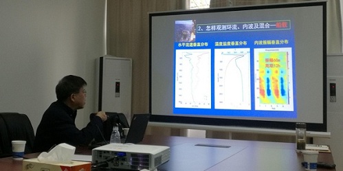 3月29日下午,我校杰出校友、中国海洋大学田纪伟教授莅临海洋学院并作了题为“南海多尺度动力过程观测与科学发现”的学术报告。田纪伟教授从“南海多尺度动力过程”、“怎样观测环流、内波及混合”、“国际海洋内波及混合观测计划”以及“南海多尺度动力过程观测研究”等四个方面系统地介绍了他在南海多尺度动力过程的最新研究成果,并与参加此次报告会的30多名师生进行了互动交流。齐义泉院长作为报告主持人,在学术报告正式开始前向田教授详细汇报了海洋学院的学科设置和建设进展。田教授不仅高度肯定了我院的学科定位,并对我院如何实现学科发展目标提出了建设性的意见和建议。