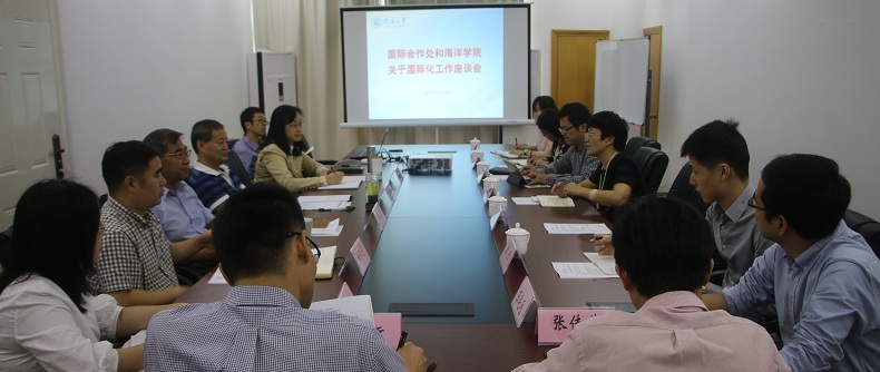 928日上午,国际合作处汪群处长、陈永平副处长、吴瑶老师、沈鹤林老师、李丹老师一行赴我院进行调研,双方就海洋学院的国际化工作举行了座谈会,齐义泉院长主持了此次座谈会。