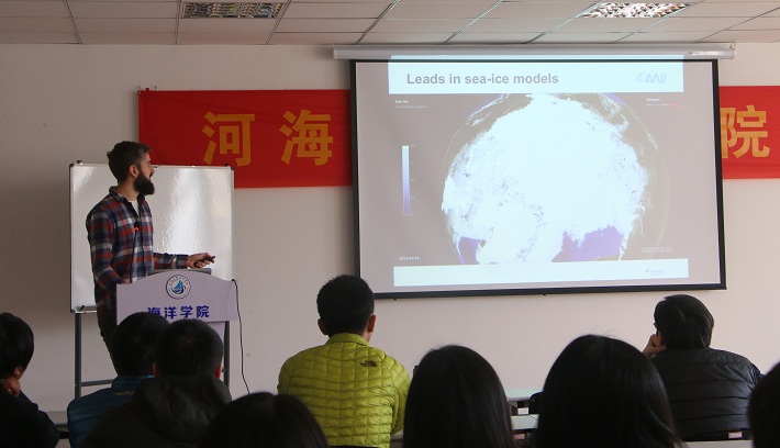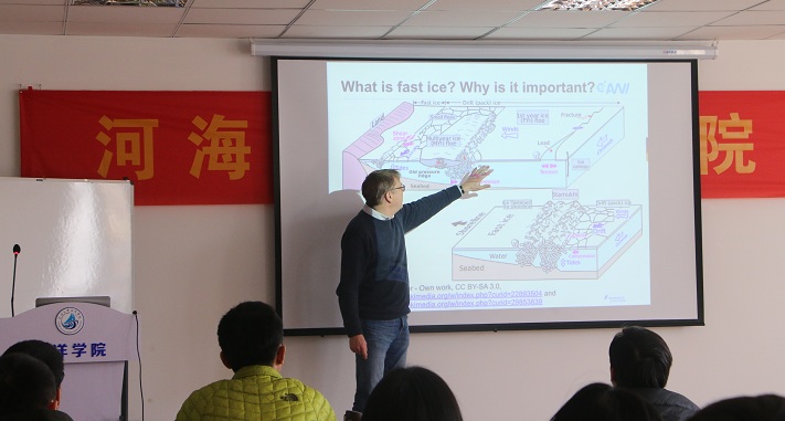 11月22日和23日,德国AWI极地与海洋研究所(Alfred Wegener Institute, Helmholtz Centre for Polar and Marine Research) Martin Losch研究员及其研究团队的Nils Hutter博士应海洋学院王雪竹博士的邀请访问我院。23日上午Martin Losch研究员和Nils Hutter博士分别向全院师生作了题为“Modelling land-fast sea ice in the Arctic”和“Towards lead-resolving sea-ice models”的精彩学术报告。Martin Losch研究员是极地海洋过程和海洋-海冰数值模拟方面的资深专家,在极地海洋海冰动力学、海洋数值模式开发及应用、海洋数据同化等研究领域具有丰富的研究经验并取得了丰硕的研究成果。