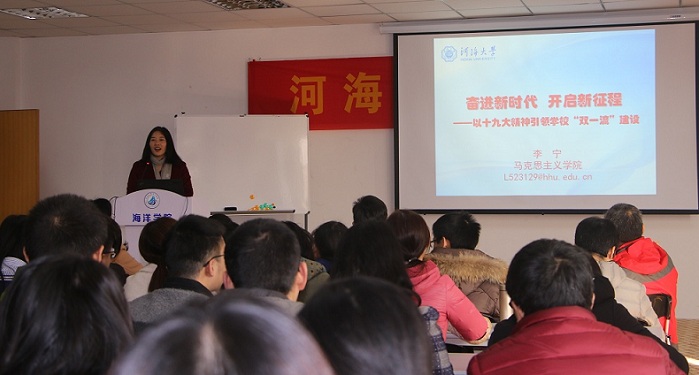 为落实学校党委关于准确把握、深刻理解、认真贯彻党的十九大精神的要求,12月12日我院邀请马克思主义学院李宁副教授为全体师生作题为“奋进新时代 开启新征程——以十九大精神引领学校‘双一流’建设”的宣讲。学院党总支王永芝书记主持宣讲会,学院领导、教师、学生共100余人参加。