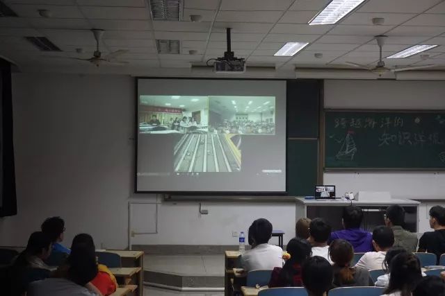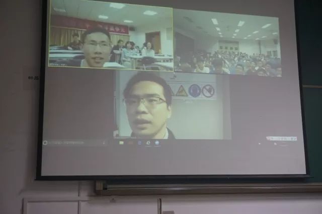 期间,王毛毛博士为大家一一讲解了科考船的结构,并将生活区和钻井平台进行了细微的介绍,吸引了同学们的眼球,开阔了同学们的视野,并促进他们的成才梦进一步的生根发芽,极大的发展了海洋人的海洋梦。之后,王毛毛博士连同和他一起受邀的科学家同同学们打招呼,与大家进行友好的交流。同学们在交流过程中,仿佛沉醉在浩大的海洋中,目不转睛的盯住屏幕,思考着每一句话。最后,王毛毛博士介绍完,同学们积极向老师提出他们憧憬的大海中可能遇到的各种各样的问题,王毛毛博士笑着为他们一一解答。