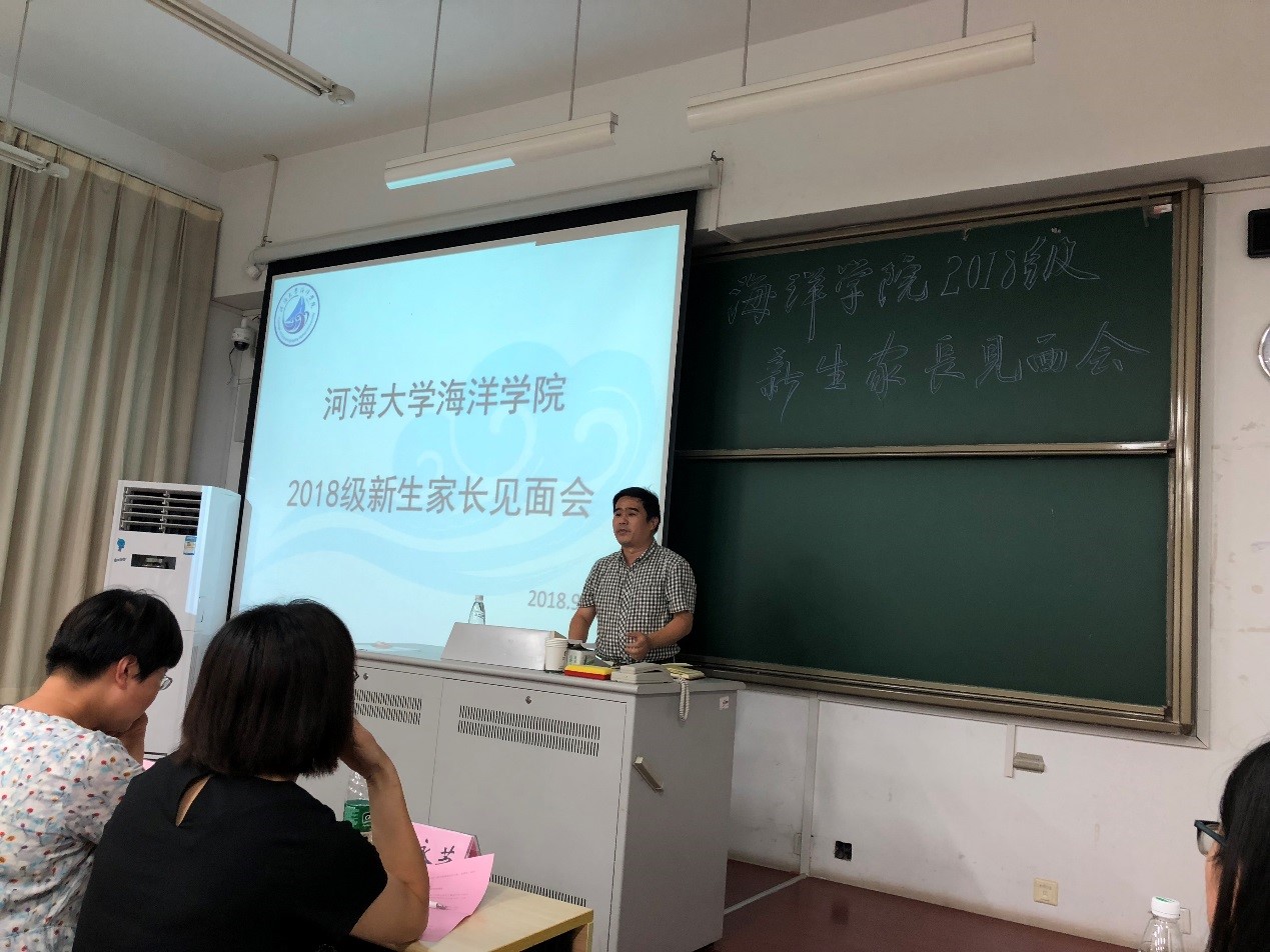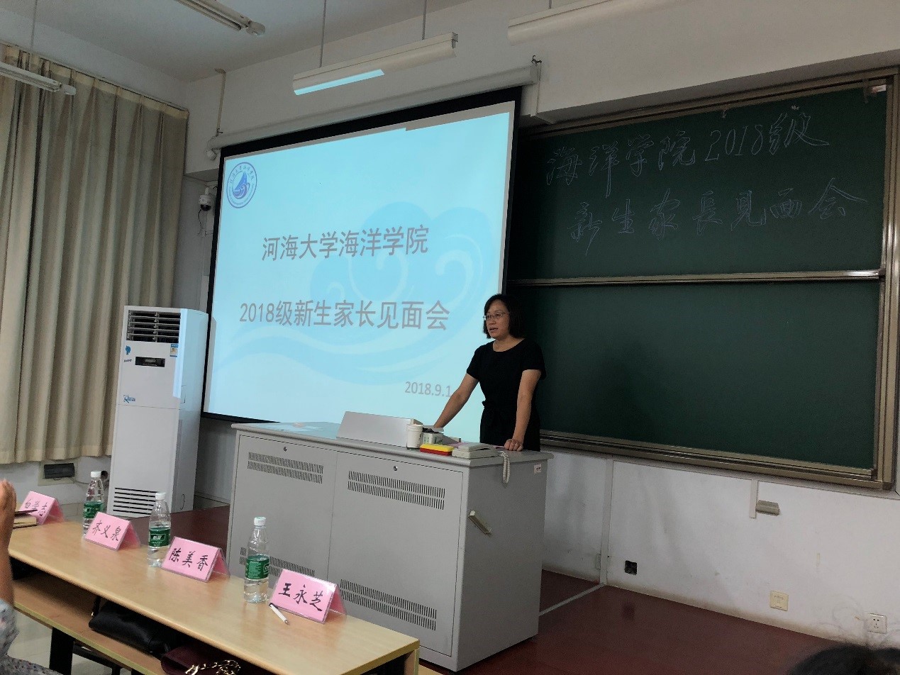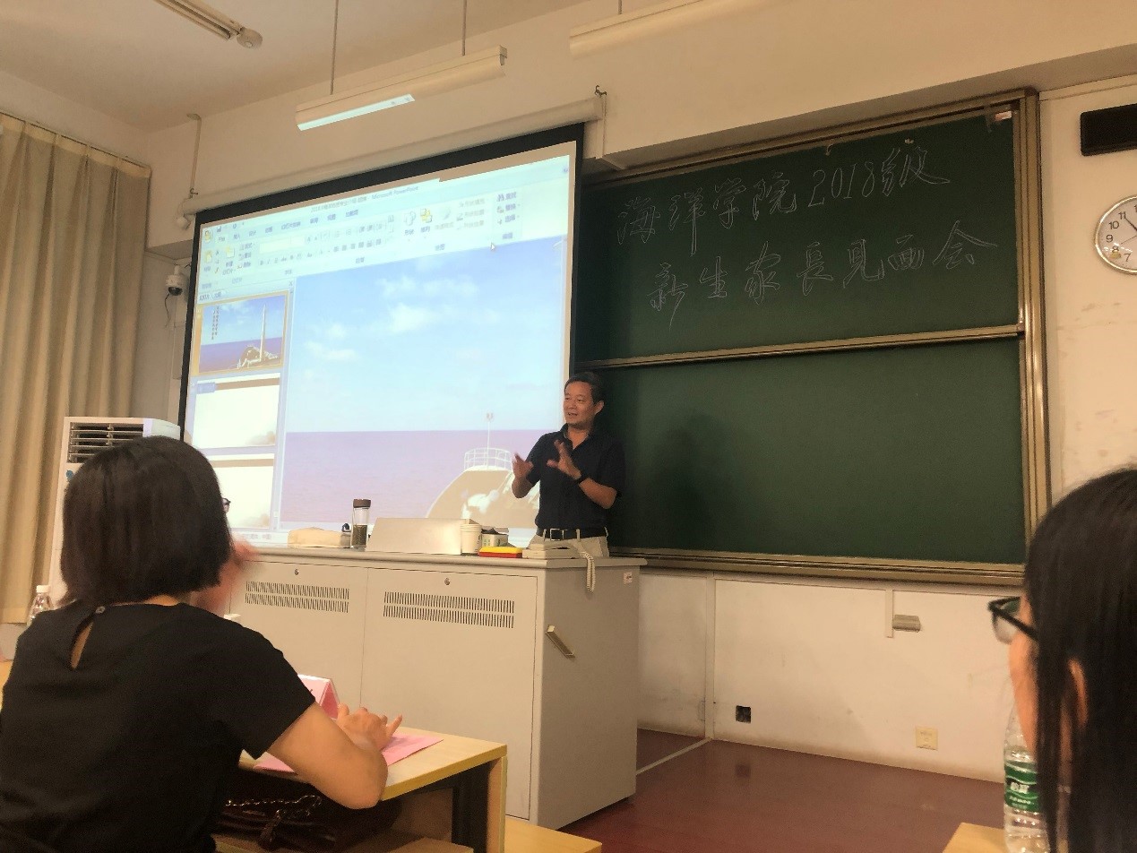 9月1日,海洋学院举办2018级新生家长见面会。学院院长齐义泉教授、副院长白学志教授;物理海洋系副主任陈美香副教授、海洋地质系副主任颉炜副教授、海洋生物系副主任吴亚平副教授、本科生辅导员、2018级各班导师及新生家长参加了此次会议。会议由学院党总支王永芝书记主持。