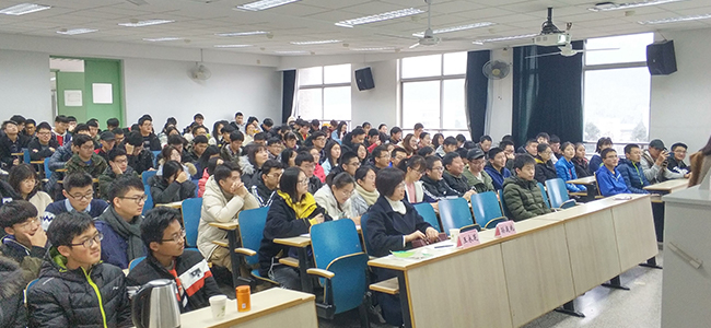 图二 学生们专注于孙庭兆校友的精彩演讲