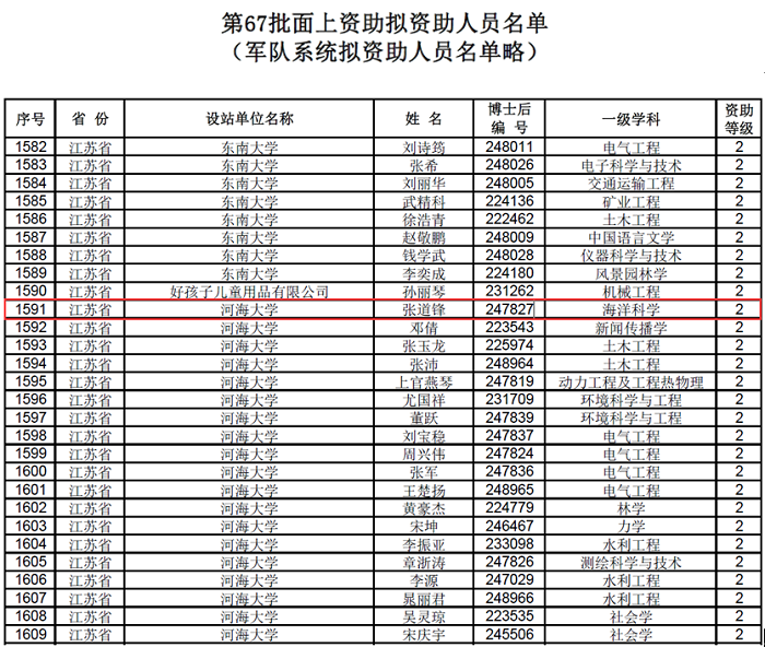 中国博士后科学基金会公示了第67批面上拟资助名单,我院张道锋博士荣获二等资助。据悉,本批次面上一等资助仅用于“向与新冠肺炎疫情防控有关的博士后研究人员开展专项资助”中直接参与新冠肺炎一线救治工作的博士后研究人员。