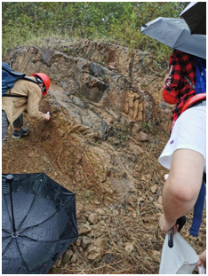 虽然是第二次来到湖山地区,针对同一套地层,同学们在初步认知的基础上更为精细地进行地层分层记录与标本采集,并结合构造地质学、沉积学等新知识,对地层构造、沉积环境进行深入分析。