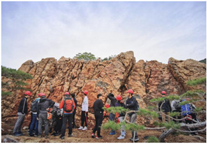 在这六天的时间里,同学们相继到达汤山石门埝水库、紫金山、南京园博园、棒槌山、汤山矿坑公园和句容宝华山等具有典型地层发育特征的地区进行踏勘与地层剖面实测工作。自古生界奥陶系至中生界侏罗系,寸步踏行只需六天,仑山象山已过亿年。历史让岩石有了温度,而观察与思考让每一位同学成为透过表象去感知、延续温度的伯乐。
