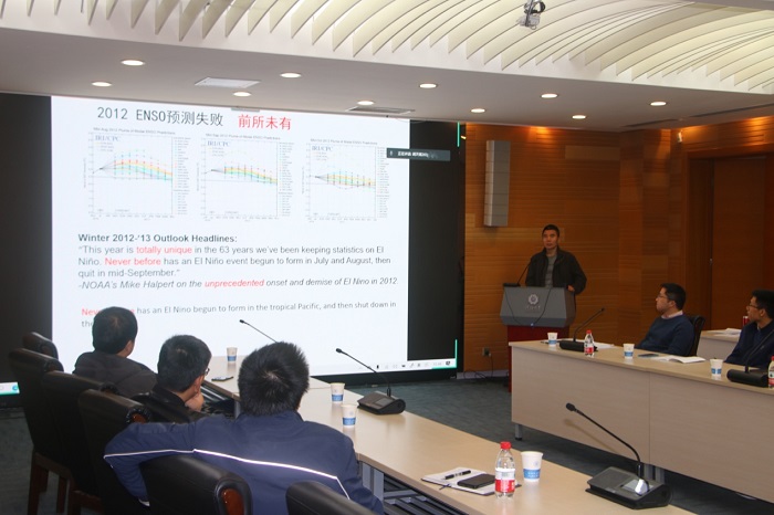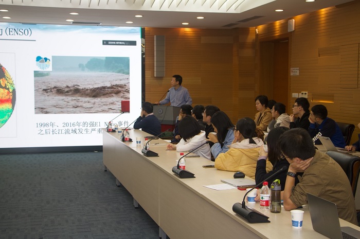下午的学术研讨会由开云电竞网海洋学院的王强教授主持。中国气象科学研究院的任宏利研究员应邀作《ENSO多样性研究进展》报告,介绍了ENSO的空间和时间多样性,并利用新的经验方法,揭示了新型ENSO事件在近40年来频发的原因;中国气象局地球系统数值预报中心的苏京志研究员应邀作《副热带太平洋海温对ENSO形成演变的调制作用》报告,从业务预报角度,介绍了两种对ENSO发生、发展具有重要影响的副热带太平洋经向模态,以及两种模态在ENSO业务预报中的重要作用。两位专家精彩的报告令在场师生受益匪浅。本次会议在热烈的研讨氛围中落下帷幕。
