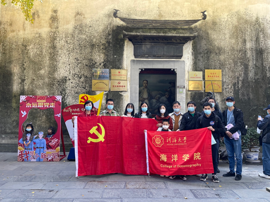 为进一步丰富基层党组织党史学习教育形式,锤炼广大教师党员党性意识,坚定教师党员的理想信念,推进产学研融合,2021年11月20日,海洋学院教师党支部赴新四军驻高淳办事处、司令部旧址及江苏固城湖青松水产专业合作联社开展主题党日活动。