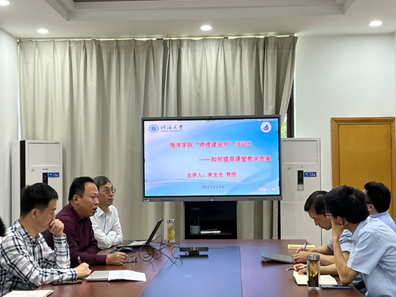 为认真贯彻落实学校“师德建设月”的部署和要求,将海洋学院的师德建设工作不断推进,5月4日下午,学院邀请了水文水资源学院教学名师束龙仓教授以“如何提高课堂教学质量”为题作专题报告。全院教师通过线上线下相结合的方式参加报告会。报告会由胡忠华书记主持。