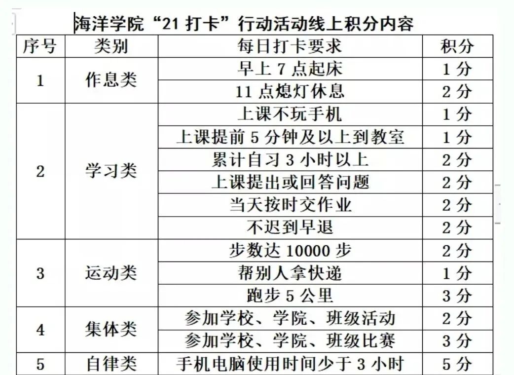 为激励养成良好生活学习习惯,我院连续第六年开展健康微积分打卡活动。通过关注健康的作息、良好的生活和学习习惯,每日的累积,让同学们切实关注自我,养成良好的作息时间和生活习惯,以身心健康的姿态去迎接每一天的学习和生活,逐渐成为一名自律自励的优秀大学生。