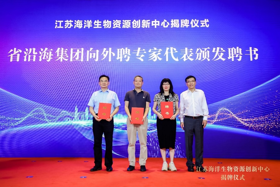 仪式期间,海洋学院副院长赵哲与江苏省沿海开发投资有限公司总经理马广源代表双方签约创新中心首批产学研合作项目协议。海洋学院教授齐义泉被聘为江苏海洋生物资源创新中心的外聘专家并颁发聘书。