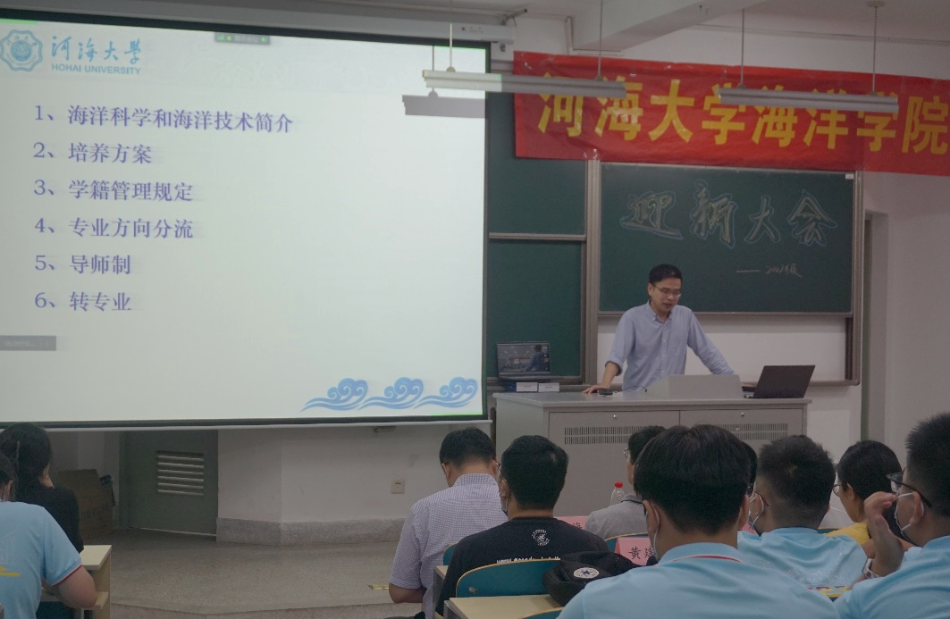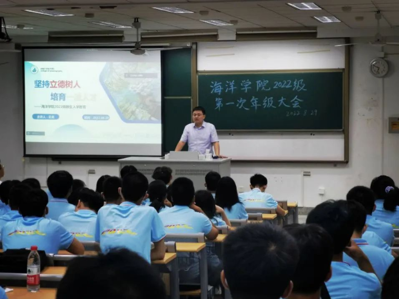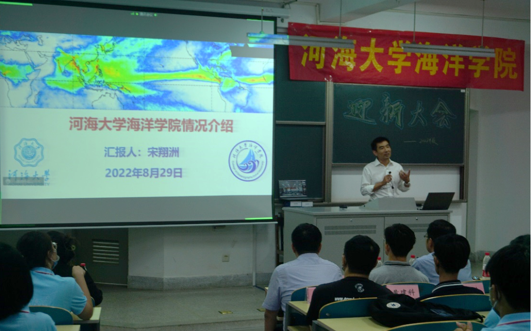 宋翔洲院长向22级新生详细介绍了海洋学院的发展历程、学科规划、师资力量、人才培养、科研情况等情况,期望各位新生用初心使命笃定青春航向,在不懈奋斗中实现自我价值。