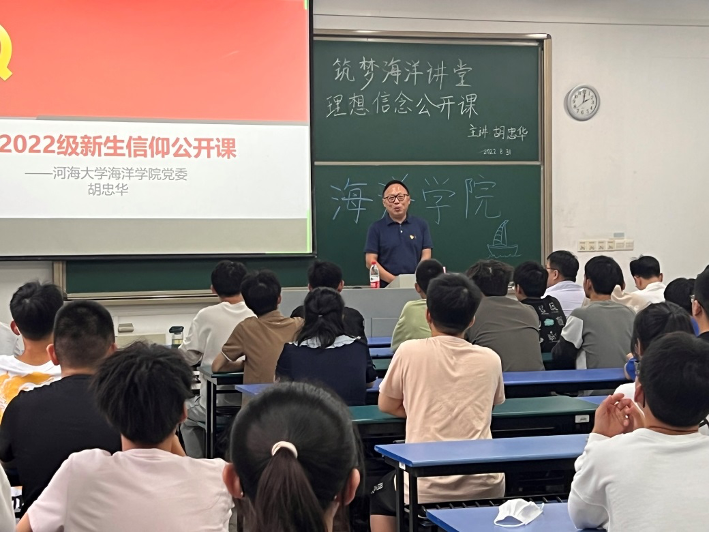 8月31日,海洋学院筑梦海洋讲堂——2022级新生信仰公开课在江宁校区励学楼110正式开讲。本次公开课是新生启航周中的第一场讲座报告,主讲人为海洋学院党委书记胡忠华老师。