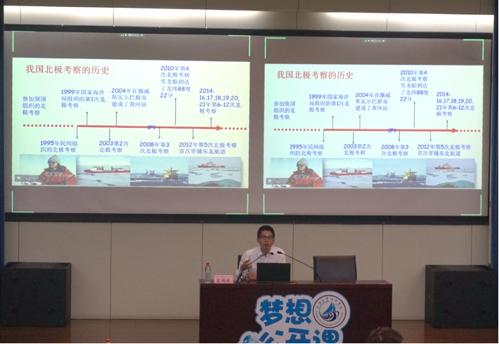雷瑞波从为何要开展北极考察、我国的北极考察进程和历史、当前我国在北极考察所取得的成绩和未来张望等方面展开论述,讲解了北极海冰和极地系统有关知识,认识到海冰和极地系统对于全球的重要作用,以及我国的极地考察进程等。通过此次讲座,同学们加深了对自身专业的认识,认识到了极地考察对于中国的重要意义以及发展海洋学科建设海洋强国对于国家的重要作用,希望同学们可以秉承着“拓宽眼界,了解大洋、走向深蓝”的意志,为我国海洋建设做出自己的贡献。
