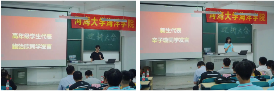 高年级学生代表、国家奖学金获得者鲍饴欣同学,分享自己优秀的学习经验,大学生应当不断磨炼意志品质,要拥有感恩包容的心。22级新生代表辛子璇同学表达了初入大学校园的激动心情,更加坚定了自己刻苦钻研不懈奋斗的目标。