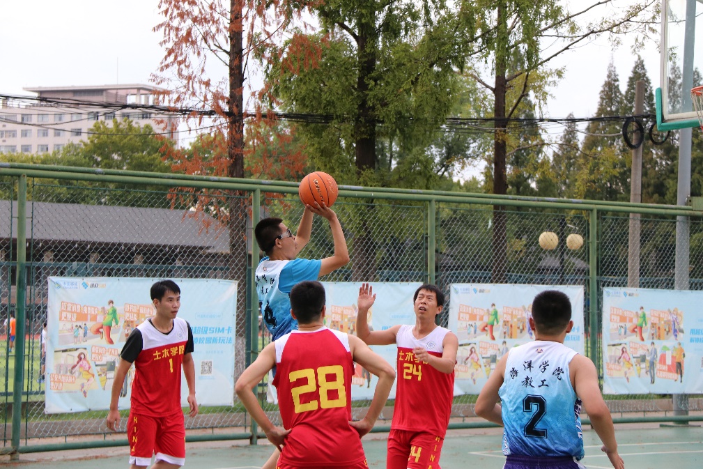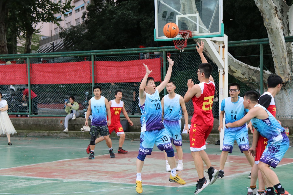 下午4点整,现场的气氛随着开场的哨响而急速攀升,球场充满紧张的竞技气氛。面对实力强劲的土木院篮球队,我院队员开场慢热,很快比分便落后两位数。随着比赛的进行,大家沉着冷静,逐渐找到比赛感觉,积极拼抢、默契配合、挡拆过人、快攻上篮、三分远投......,充分发挥个人特长和团队协作精神,比分也逐渐赶了上来,经过三节的激烈对抗,双方带着平分的局势,进入到最后一节的鏖战,在体力即将耗尽的情况下,双方队员仍然顽强拼搏,做好每一次功防,你来我往比分交替领先,随着土木院最后时刻的投篮失准,我院教工队最终以3分的微弱优势取得了一场艰难的胜利。