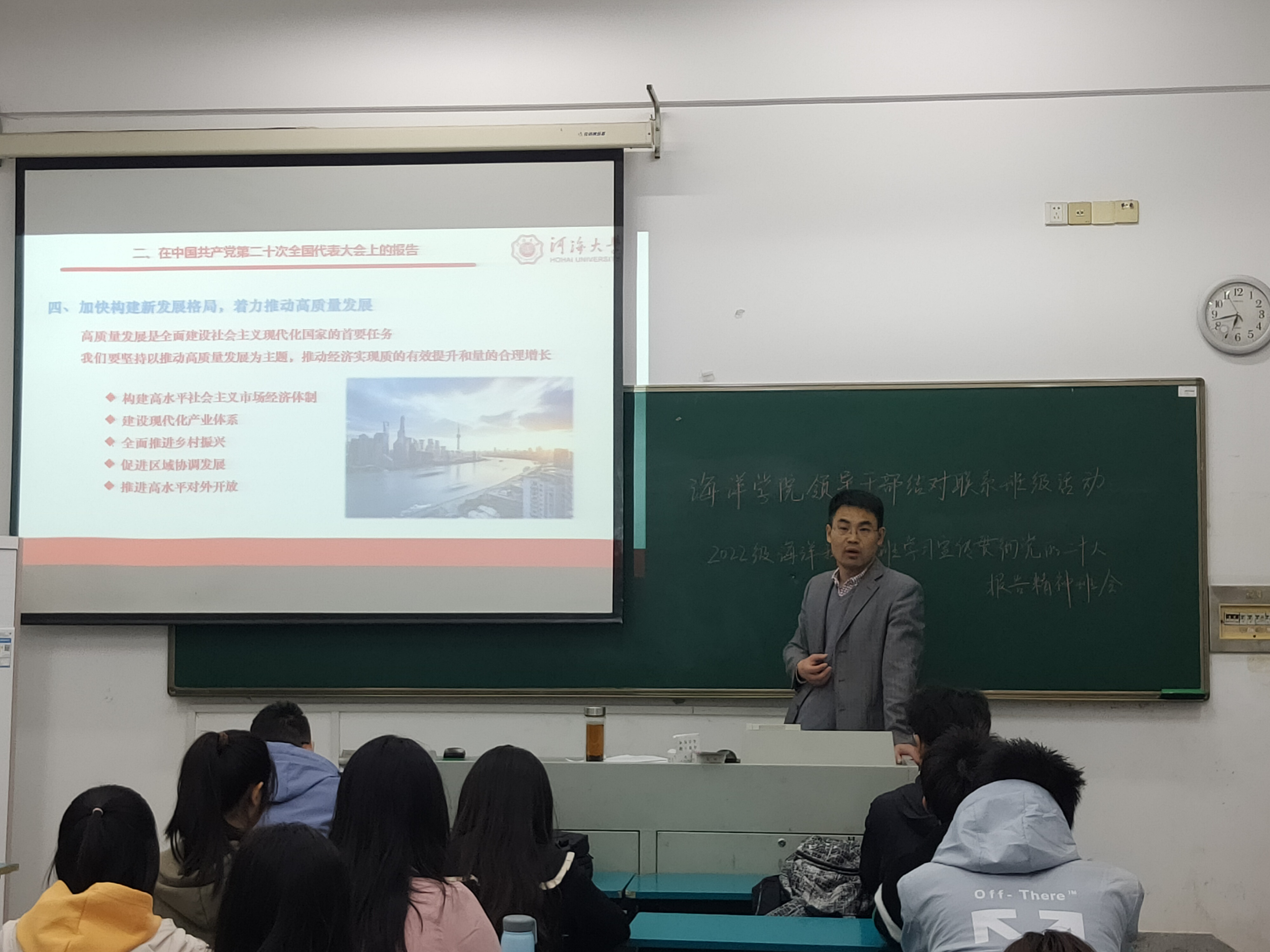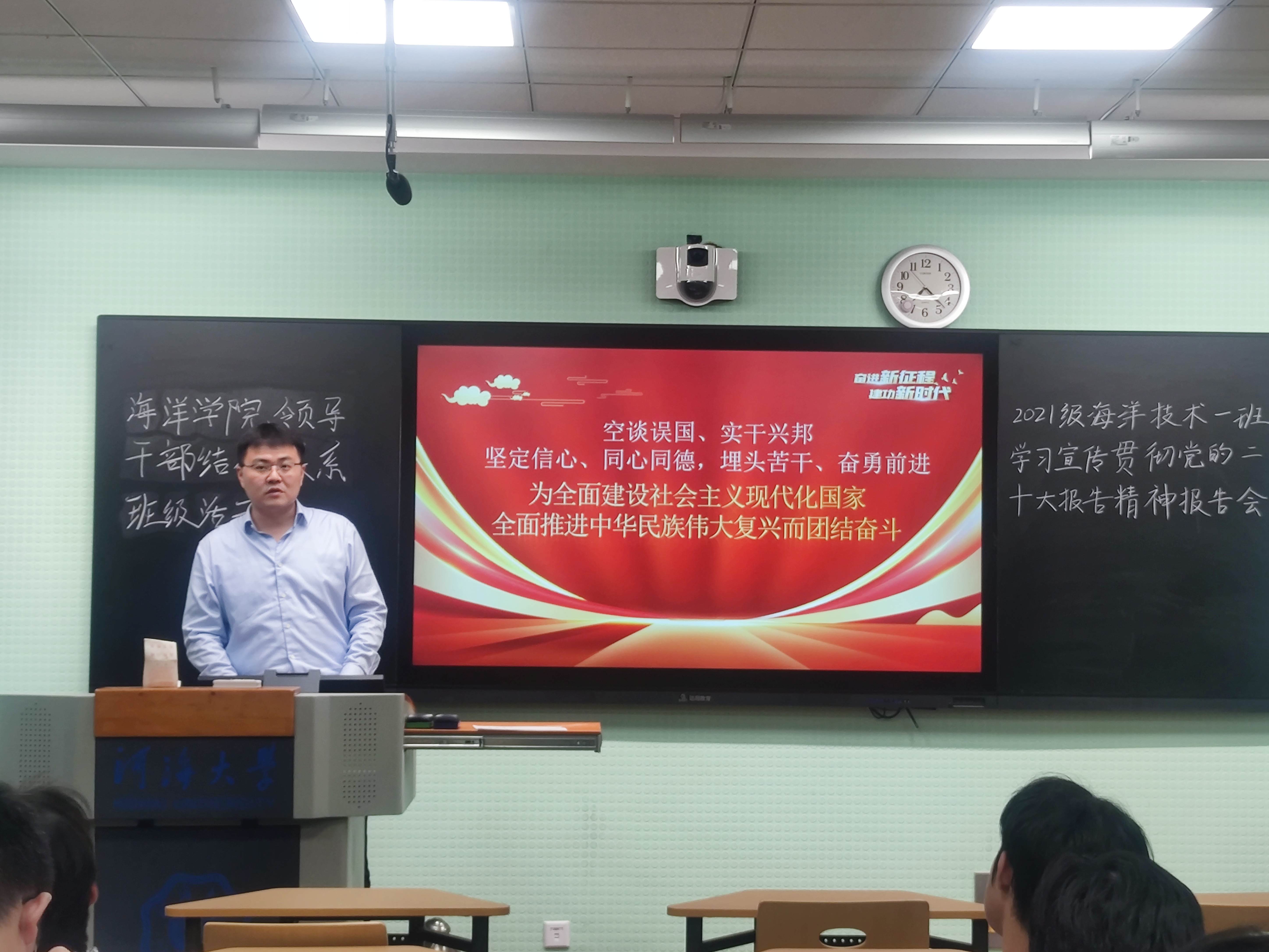 海洋学院深入学习宣传贯彻党的二十大精神,通过党委理论中心组学习、“三会一课”、主题党团日活动等形式,在领导班子率先学上下实功,在党员干部引领学上出实招,在广大师生跟进学上见实效。此次学院领导班子深入结对班级开展宣讲交流,既是学习宣传贯彻党的二十大精神的具体举措,也是坚持用党的创新理论引导青年学生成长成才的内在要求,为今后进一步加强大学生思想政治教育与价值引领提供了有力支持。