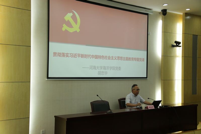 为进一步贯彻落实党的二十大精神,深入开展学习贯彻习近平新时代中国特色社会主义思想主题教育,6月9日下午,海洋学院胡忠华书记为师生讲授主题教育专题党课。学院党委副书记吴昊、党委组织员阮雪琴、本科生辅导员金颖、研究生辅导员刘彩英及学生党员共100余人参加。