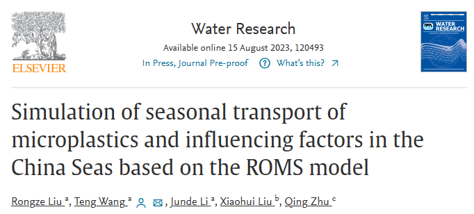 近日,我院海洋观测与预报技术研究所21级硕士研究生刘荣泽在导师唐佑民、王腾和李俊德老师的共同指导下,对中国近海微塑料的季节性输运、分布及其影响因素进行研究,揭示了中国近海陆源微塑料的季节性环境迁移规律,为微塑料污染管控提供了理论支持。相关成果以“Simulation of seasonal transport of microplastics and influencing factors in the China Seas based on the ROMS model”为题,发表在环境领域顶级期刊《Water Research》(中科院大类一区, JCR Q1, IF=12.8)上。该工作体现了物理海洋学和环境科学在海洋污染物研究中的交叉应用。我院21级硕士研究生刘荣泽为第一作者,王腾博士为通讯作者,李俊德教授、自然资源部第二海洋研究所卫星海洋环境动力学国家重点实验室刘晓辉副研究员和中国科学院地理与湖泊研究所朱青研究员为本文的共同作者。论文简介如下: