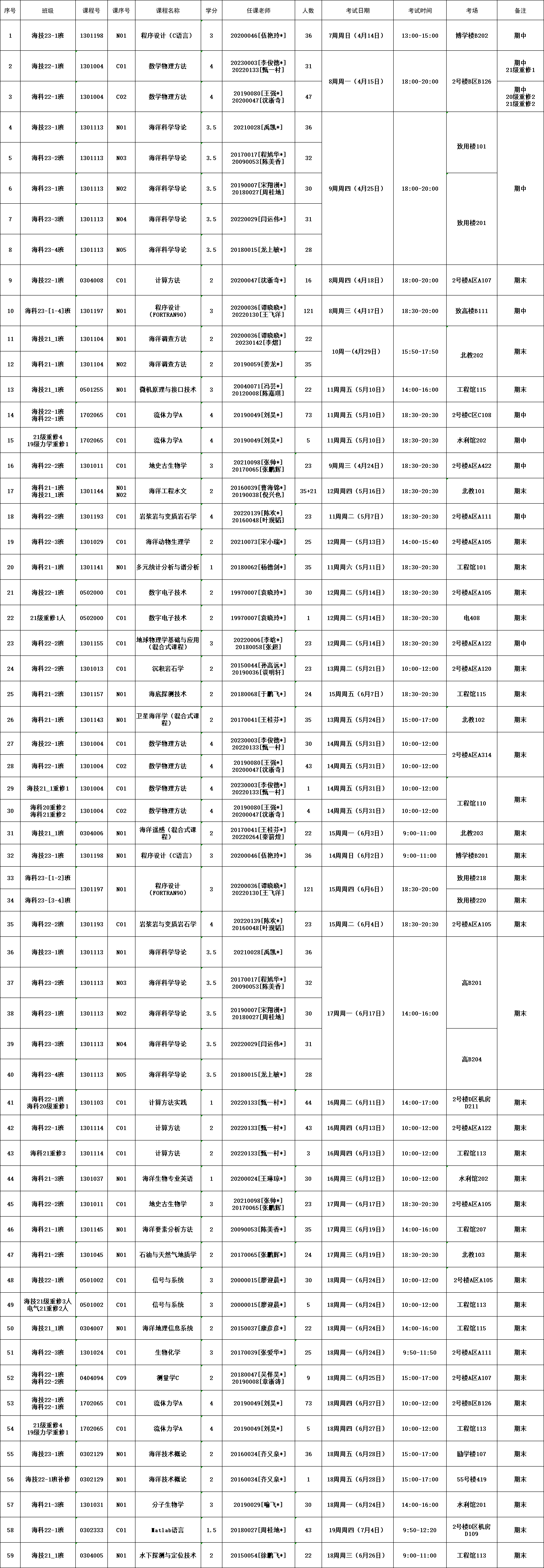 2023-2024--2学期海洋院专业课考试安排