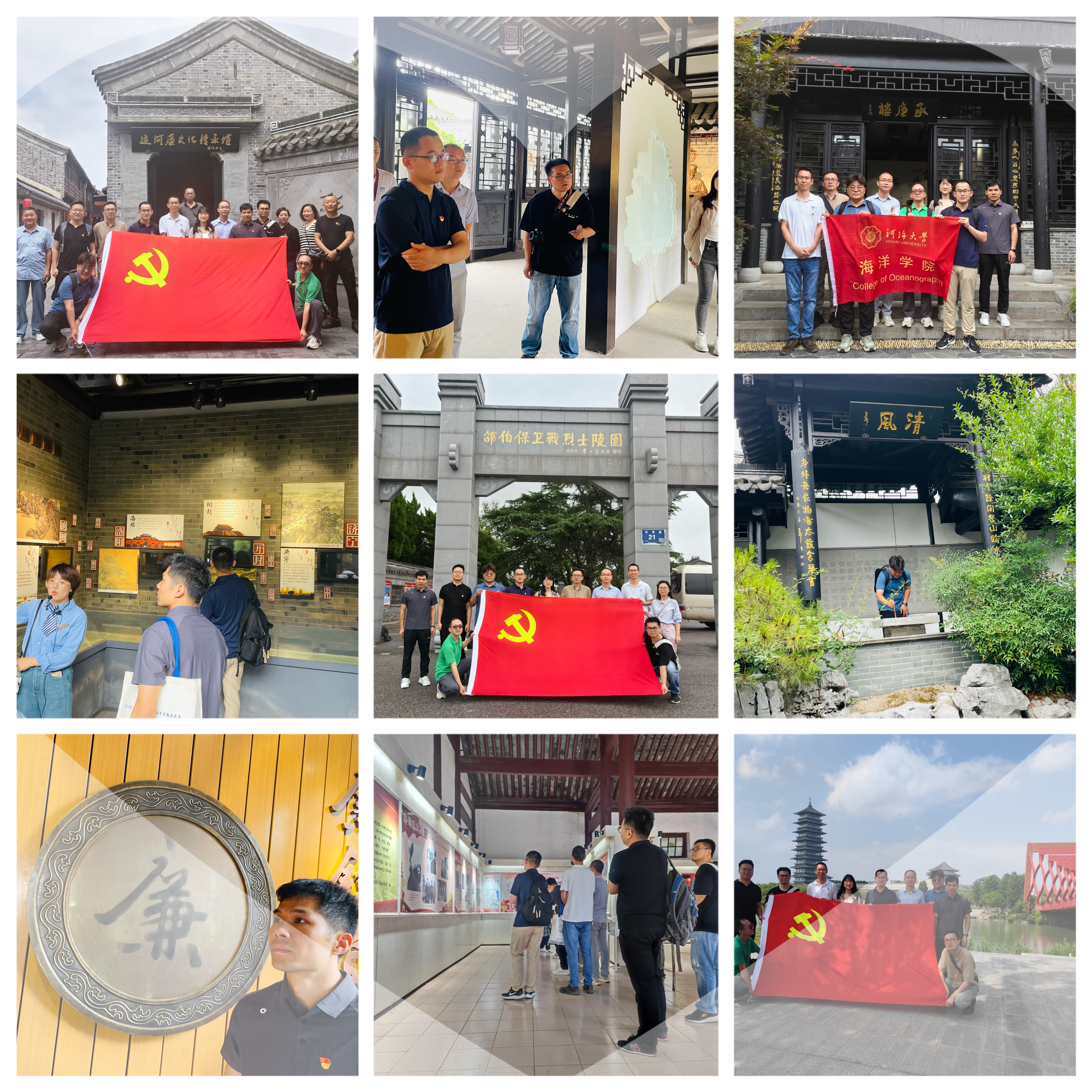 为进一步加强党纪学习教育和廉洁文化教育,把加强党纪和廉洁文化建设作为一体,推进不敢腐、不能腐、不想腐的基础性工程抓紧抓实抓好,充分发挥廉洁文化阵地启智润心的教育功效,2024年6月20日,海洋学院海洋地质研究所党支部、海洋生物研究所党支部和海洋气象与气候研究所党支部共同走访扬州清风专线,联合开展“廉洁文化研学”主题党日活动。
