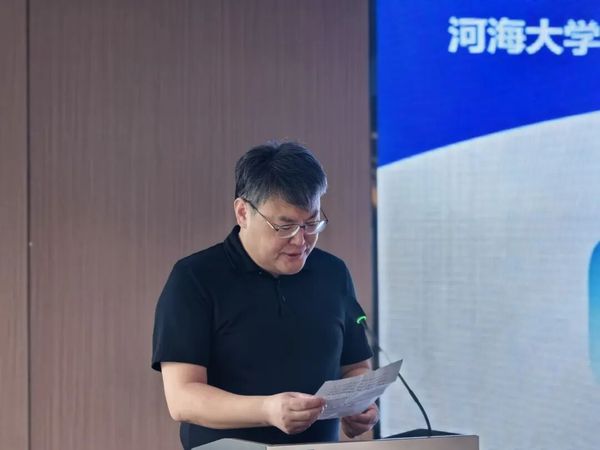 1977级农田水利工程专业校友张爱军致辞,并向学校赠送“河润万物 海纳百川”书法作品。