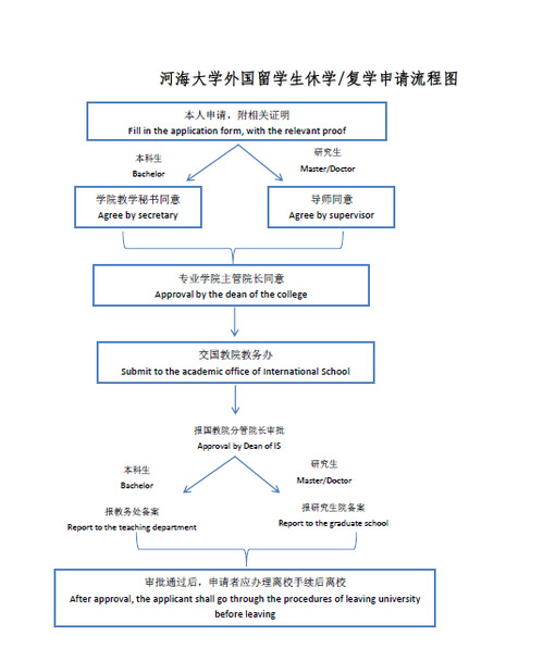 V. Procedures for application for suspension and resumption of study by international students at Hohai University