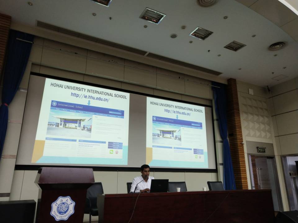 Among International School personnel, Mrs. Rochelle Li first introduced the Hohai University, Mrs. Li Junyu explained about the rules and regulations for studying and applying degree from Hohai University. In addition, Ms. Catherine Yang clarified about the medical insurance policies as well as student activities affairs for foreigner students; Mr. Ying gave details about the policies for living at dormitory as well as visa extension. Further, Gazi Tawfiq Ezaz, PhD Student presented student activities and achievements of senior students studying at Hohai University.