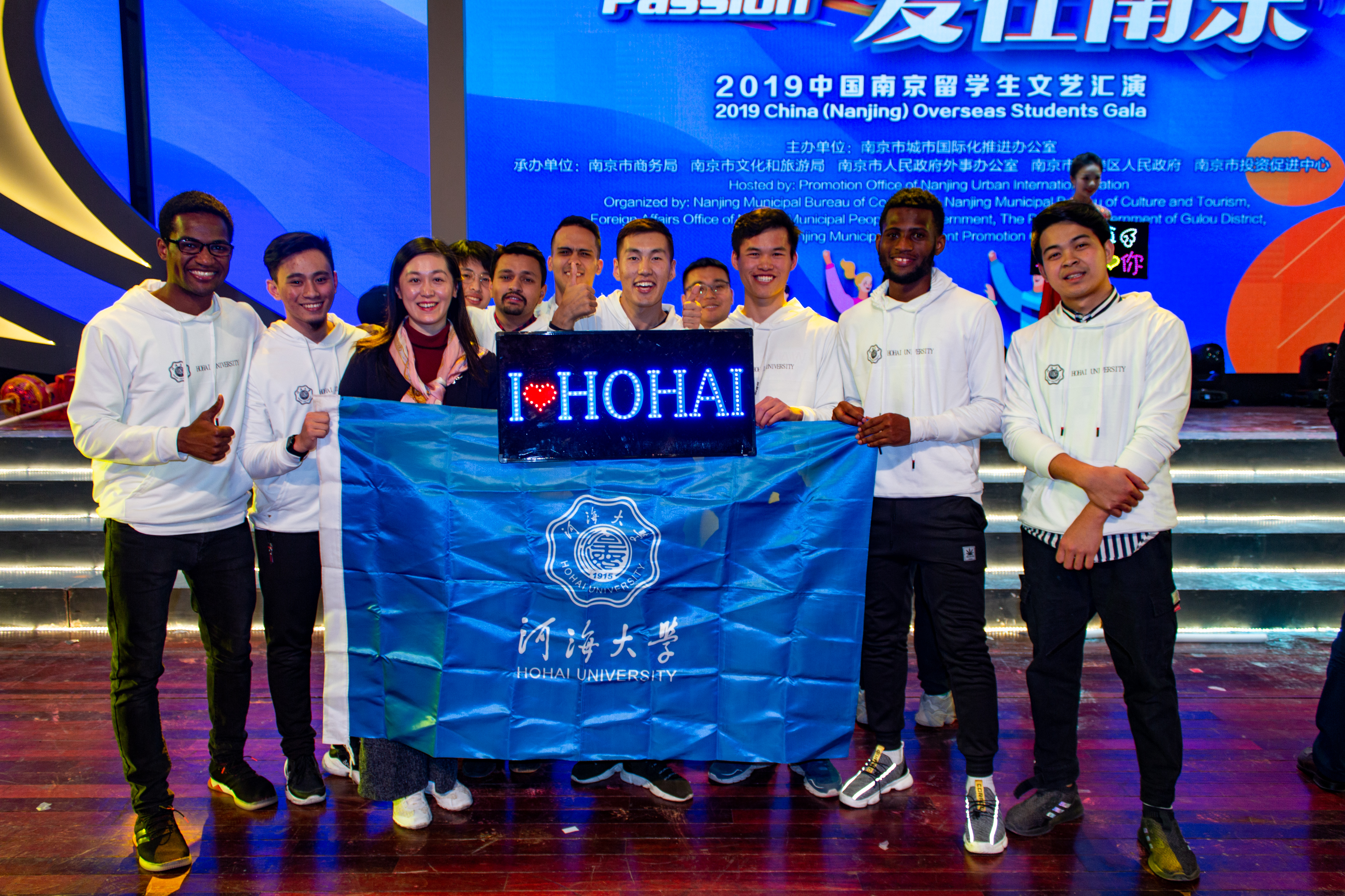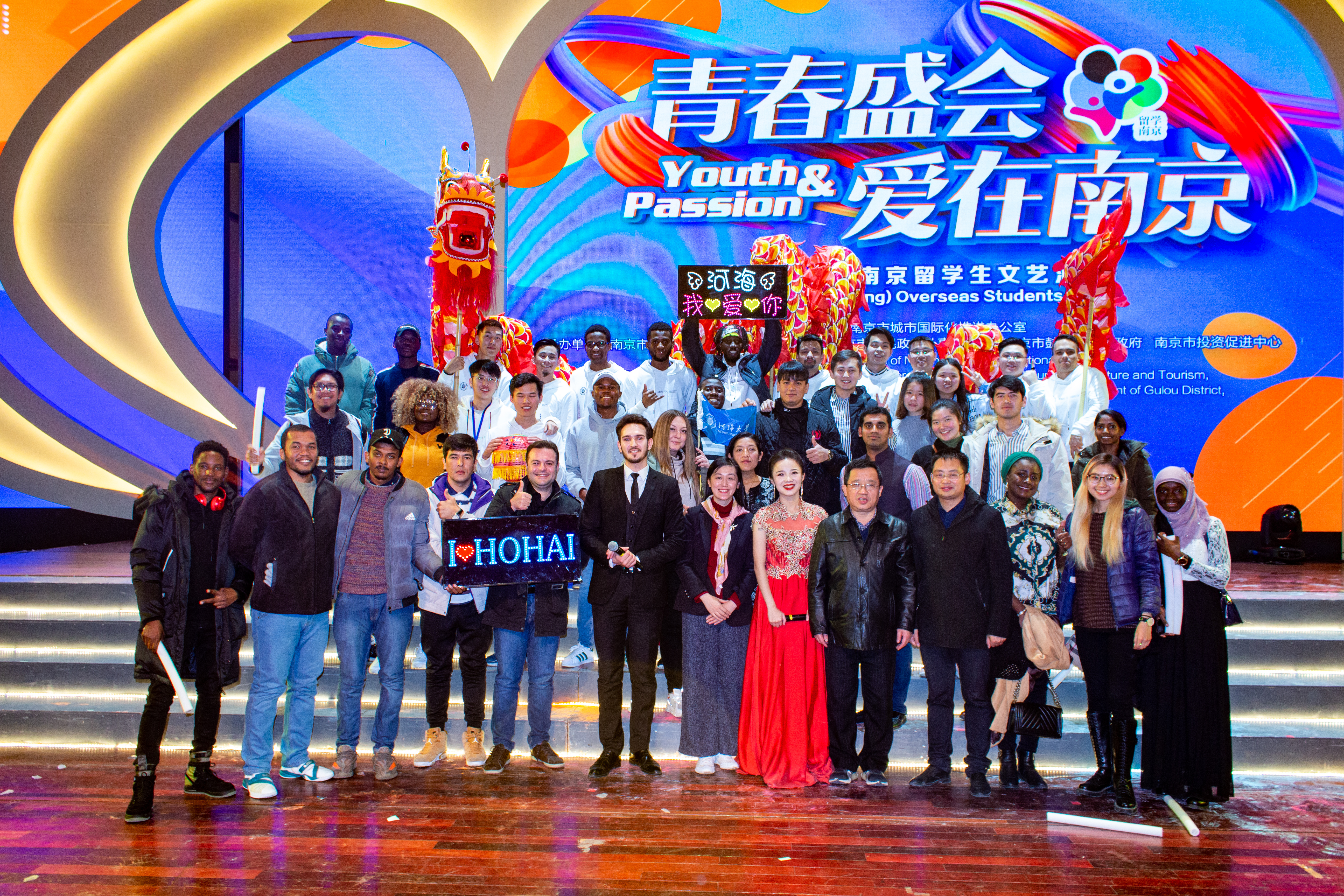 The program was anchored by Hohai University students. A team of International Students from Hohai University performed Traditional Chinese Dragon Dance. About 1000 spectators were present during the Gala. Audiences were amazed by the stage performances by both International and Chinese students of different Universities of Nanjing. Around 50 International Students of Hohai University enjoyed the cultural event with full joy. Mr. Fan Rui, Vice-Dean, International School along with Mrs. Catherine Yang, Director of Students’ Affairs Office, Mr. Ying, Student Affairs Office, International School, Hohai University also joined with Students.