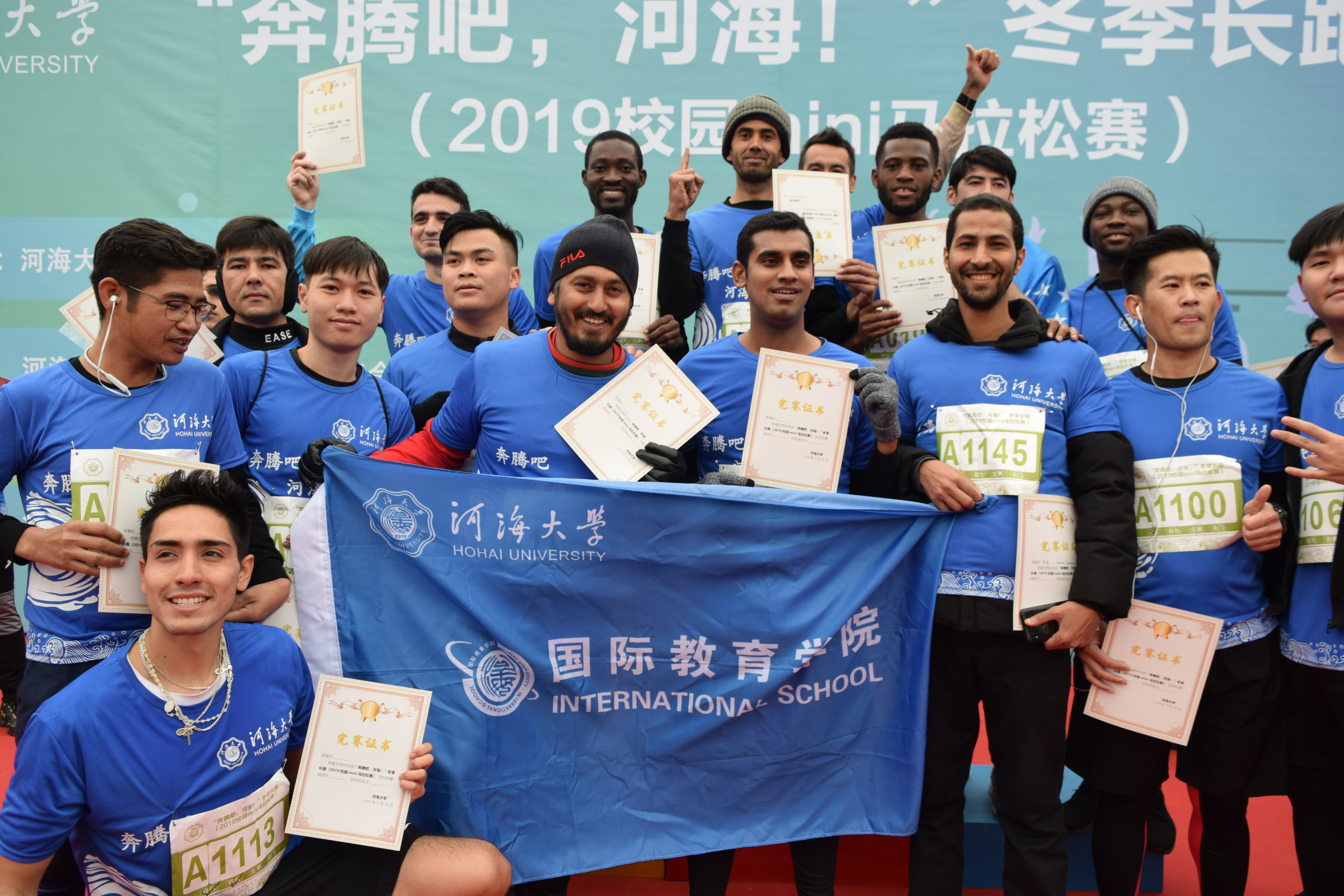 At beginning, Mr. Guo Jichao, Deputy Party Secretary of CPC of Hohai University gave an opening speech. After that, students enjoyed extraordinary stage performances (singing, dance, gymnastics etc.). Although the weather was cold, nearly 2000 competitors attended the Marathon, included staffs and students, among them more than 100 International students from 37 countries also joined the race. It started at 9:00 am. Although it was not a track race, the 6 Kilometers' journey saw a fierce competition among the participants, albeit it was thrilling.