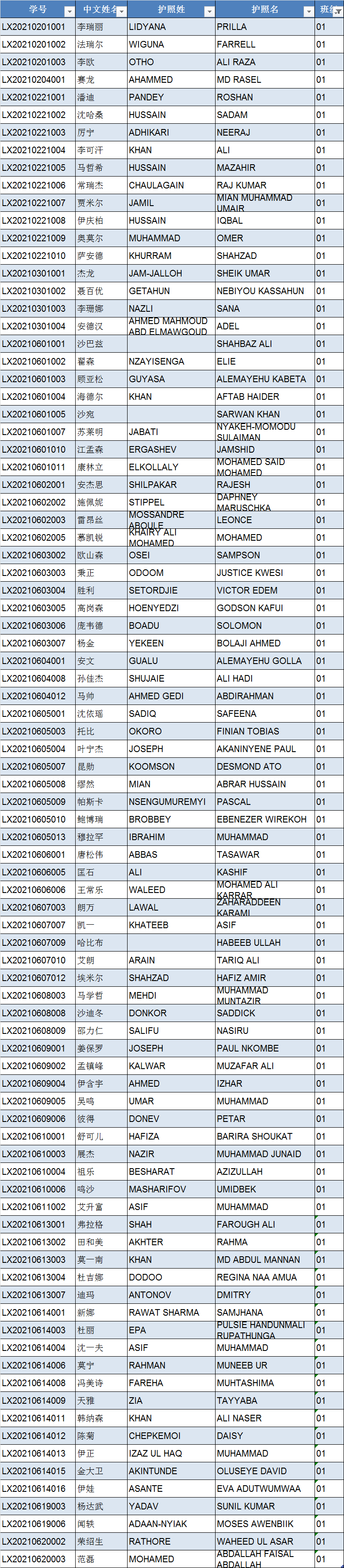 (1) 01班指汉语(2015LXS01-01)和中国概况(2015LXS03-01),修课学生为2021级博士生、高级进修生、普通进修生。