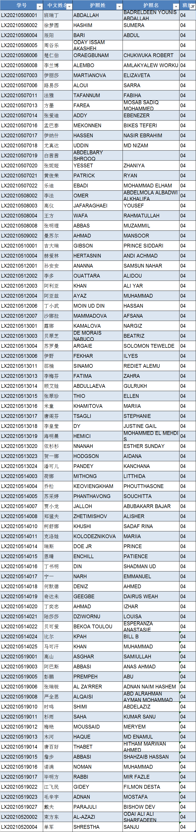 (4) 04班指汉语(2015LXS01-04)和中国概况(2015LXS03-04),修课学生为2021级其他学院的硕士生。