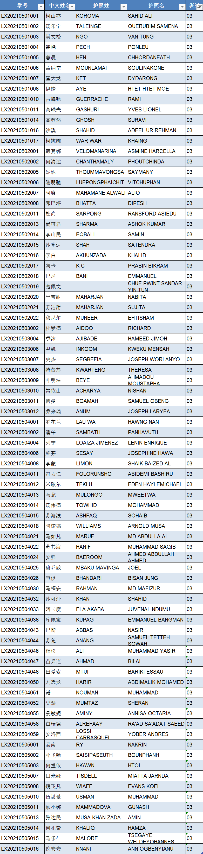 (3) 03班指汉语(2015LXS01-03)和中国概况(2015LXS03-03),修课学生为2021级水文院、水电院、港航院、环境院和土木院的硕士生。