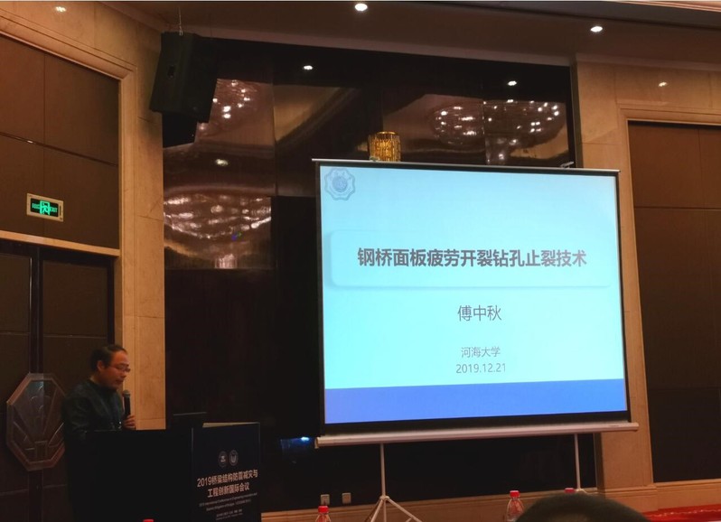 2019年12月20-22日“2019年桥梁结构防震减灾与工程创新”国际会议在杭州召开。本次会议由浙江工业大学、同济大学主办,有来自国内外的专家学者代表400余人参会。课题组成员傅中秋老师应邀参与了本次会议,并作了题为“钢桥面板疲劳开裂钻孔止裂技术”的分会场特邀报告。