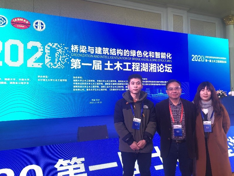 2020年12月18日至20日,“第一届土木工程湖湘论坛—桥梁与建筑结构的绿色化和智能化”在长沙隆重召开。课题组吉伯海老师,博士生姚悦、高天参加了会议。会上吉伯海老师受邀作了题为“大跨桥梁钢箱梁疲劳病害处治关键技术及其标准化”的大会报告。土木与交通学院伞冰冰、姚菲老师也参加了此次会议。