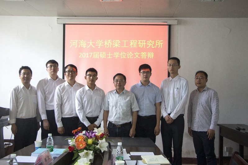 2017年5月22日,开云电竞网土木与交通学院桥梁工程研究所2017届硕士研究生毕业论文答辩在结构实验室204会议室举行。本次答辩委员会由五位老师及一位答辩委员会秘书组成。最终,经汇报、提问及回答问题,并由答辩委员会投票表决,课题组四位学术型硕士研究生刘天笳、张呈奕、谢曙辉、周骜和课题组专业型硕士研究生魏永建顺利通过了硕士学位论文答辩。