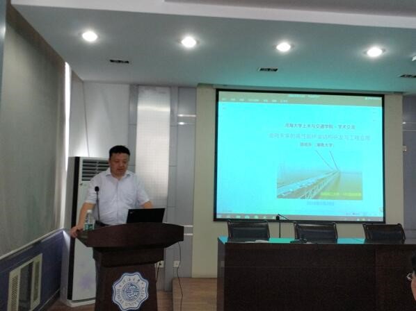 2018年6月20日,湖南大学邵旭东教授应邀到我校进行学术交流,在科学馆516会议室作了题为“面向未来的高性能桥梁结构研发与工程应用”的学术报告。报告会由周继凯副院长主持,桥梁工程研究所教师、课题组研究生及桥梁专业大三本科生和部分其他专业学生参加了报告会。邵教授在报告中主要介绍了其团队关于超高性能混凝土(UHPC)在桥梁结构应用的研究成果,并介绍了四类高性能桥梁结构及相关工程应用。与会师生与邵教授展开了深入的讨论。