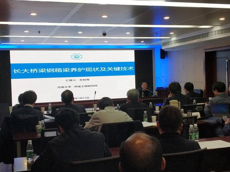 2019年3月23日,由江苏省交通运输厅、江苏省钢结构桥梁产业联盟主办的“第一届中日钢桥技术研讨会暨江苏省钢结构桥梁产业联盟系列讲座”在南京召开。课题组吉伯海教授应邀参加此次会议,并作了题为“长大桥梁钢箱梁养护现状及关键技术”的报告。