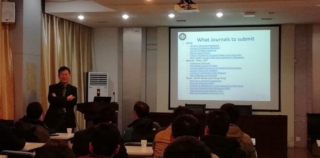 2018年12月13日下午,美国康涅狄格大学土木与环境工程系助理教授张伟博士受邀在我校科学馆516报告厅,作了题目为“Evaluating Progressive Damages of Coastal Infrastructures”的学术报告,桥梁所约30余名师生参加了报告会。张伟博士详细介绍了其研究的自然灾害作用下沿海基础设施的渐进式损伤评估方法,会后与参会师生就风浪相关性数值模拟、晶体裂纹扩展等学术问题及高水平学术期刊论文写作展开热烈讨论。
