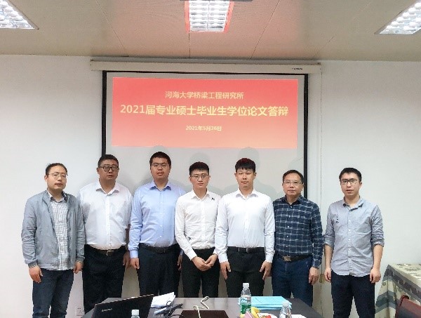 2021年5月24日和26日,课题组2021届硕士研究生毕业论文答辩在开云电竞网桥梁工程研究所204会议室举行。经研究工作及成果汇报、答辩专家提问及问题回答等环节,由答辩委员会投票表决,课题组五位学术型硕士研究生费江滨、刘嘉正、万吕、王赞、陈念念以及四位专业型硕士研究生范杰、俞海生、蒋逍、章郝明均顺利通过硕士学位论文答辩。