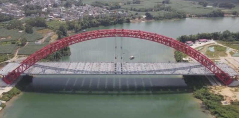 在建世界最大跨径提篮拱桥沙尾左江特大桥格子梁顺利合龙