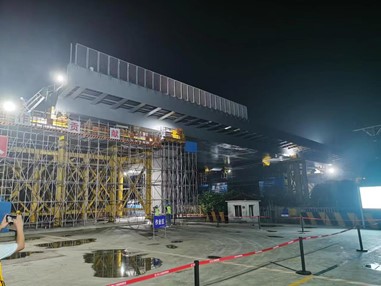 课题组参与的常州奔发路钢箱梁顶推施工精准就位