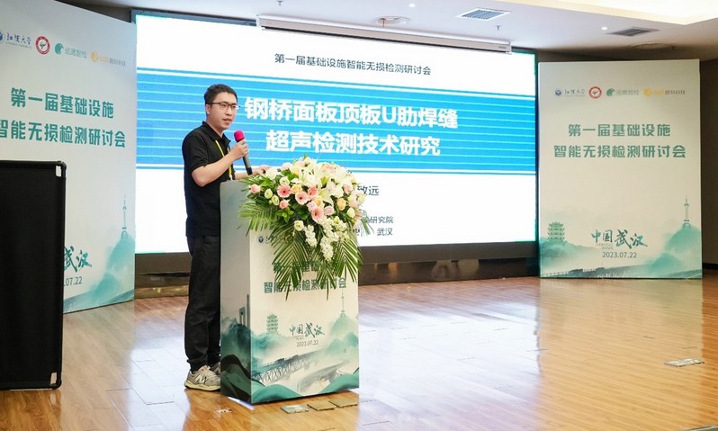 2023722日,第一届基础设施智能无损检测研讨会在武汉召开,课题组袁老师和博士生夏俊元参加会议。袁老师受邀作了题为“钢桥面板顶板U肋焊缝超声检测技术研究”的交流报告。