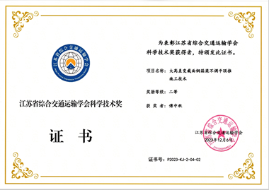 “钢箱梁不调平顶推施工技术”获江苏省综合交通运输学会科学技术二等奖
